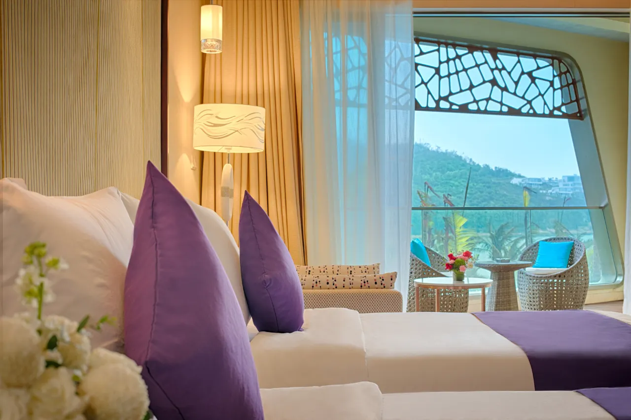 酒店室内设置了多处大面积落地窗,能够更直面的欣赏东澳岛的绝美海景,阳光沙滩同一望无际的海平面一齐充斥着这久违的夏日海岛假期。