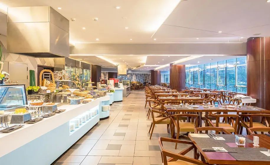 在法式咖啡厅观赏海景的同时,还能尽情享用法式传统甜点、各式茶饮和咖啡;国际美食自助餐厅也是供应着上百款珍馐美食哦。