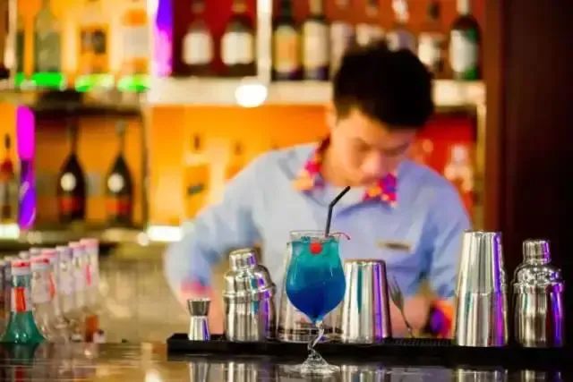 夜幕降临时,位于酒店一楼的酒吧开始了精彩的夜生活。驻场歌手轮番演唱各种经典英文歌,现场气氛热烈而不嘈杂。酒店的资深调酒师Toshiya来自宝岛台湾,能够根据每个人的第一印象熟练,调配出不同风格的鸡尾酒。