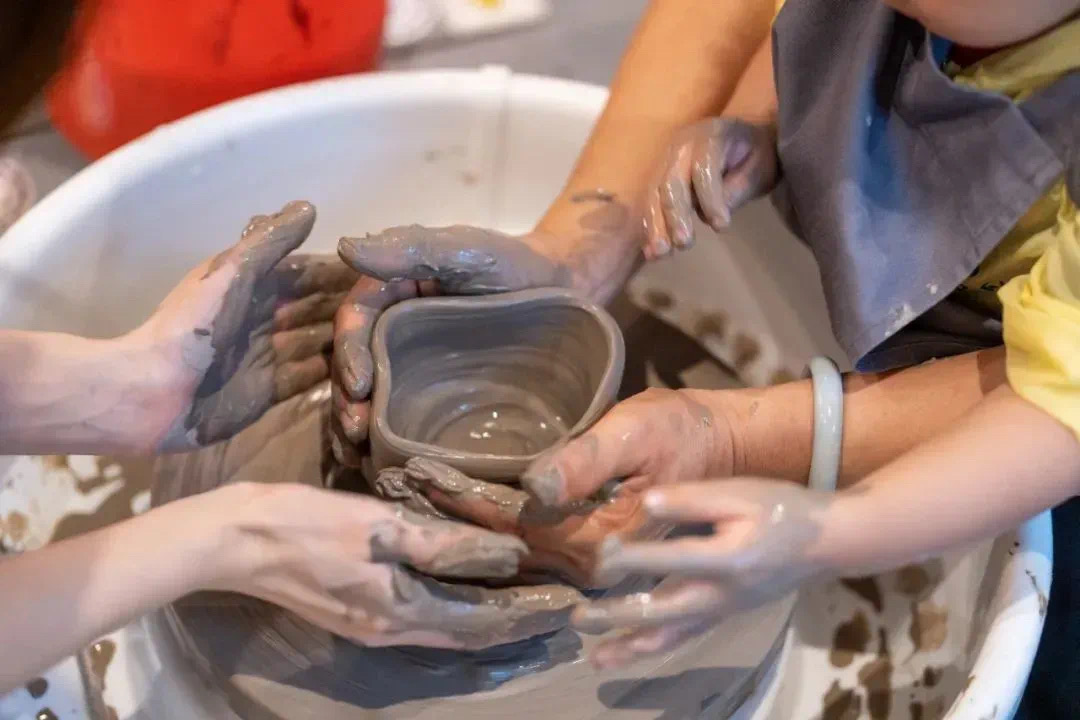 在捏塑泥块的过程中,感受陶器制作的魅力。