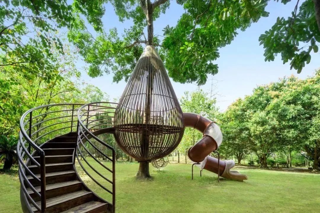 汤泉儿童乐园有儿童秋千、滑滑梯、