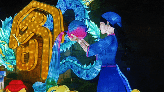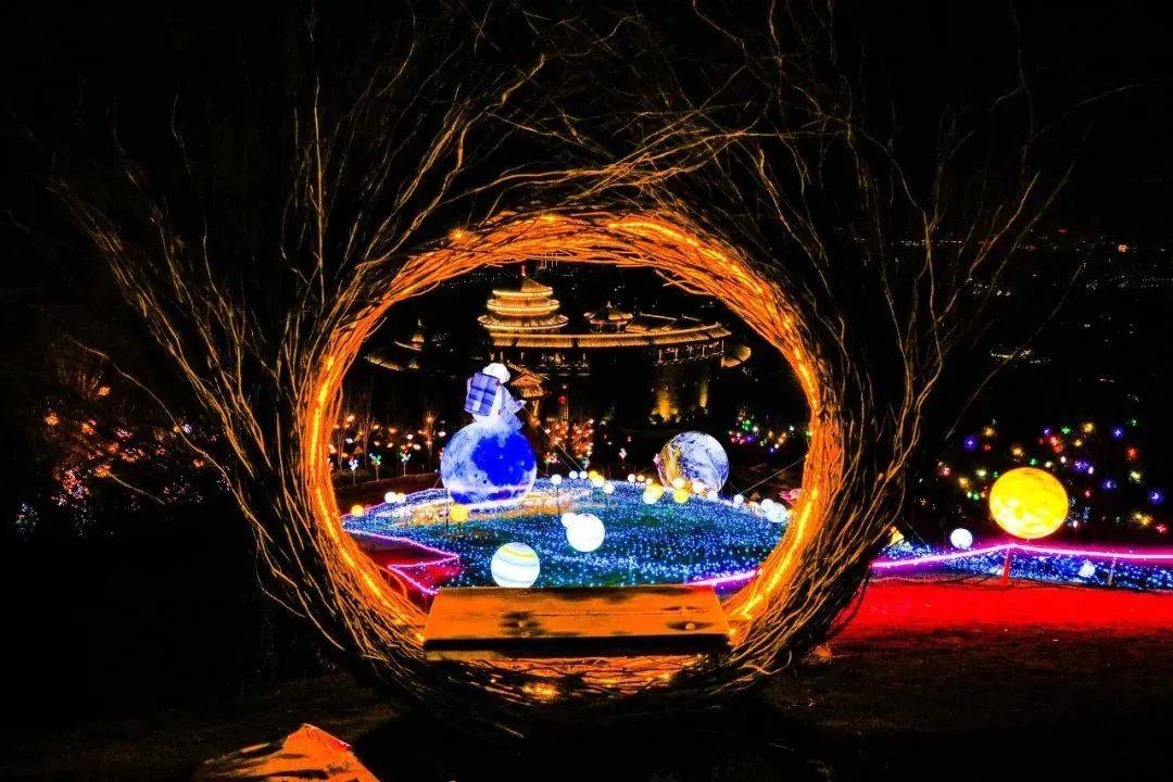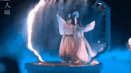 麦浪灯海与国潮水雾门演艺相辅相成浮台之上,旋转的水雾门里仙气飘飘