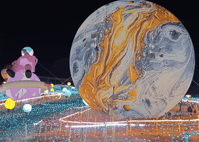 星空漫步,立于「星系」之中沉浸式体验充满创意科技的光影秀穿过色彩斑斓的小行星天幕璀璨银河便展现眼前