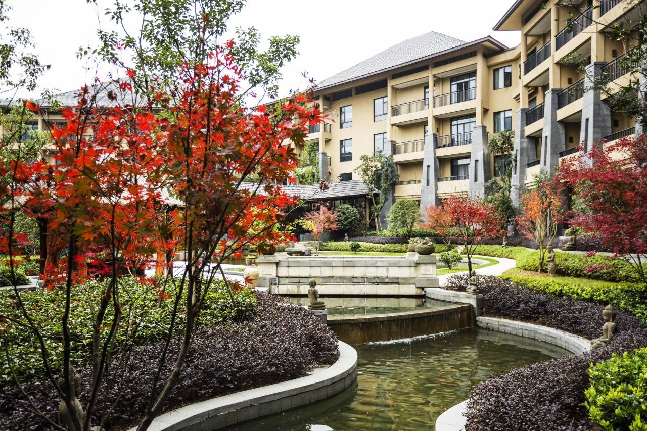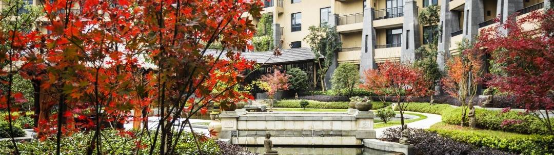 秋日里,酒店庭院的银杏黄了、红枫艳了,