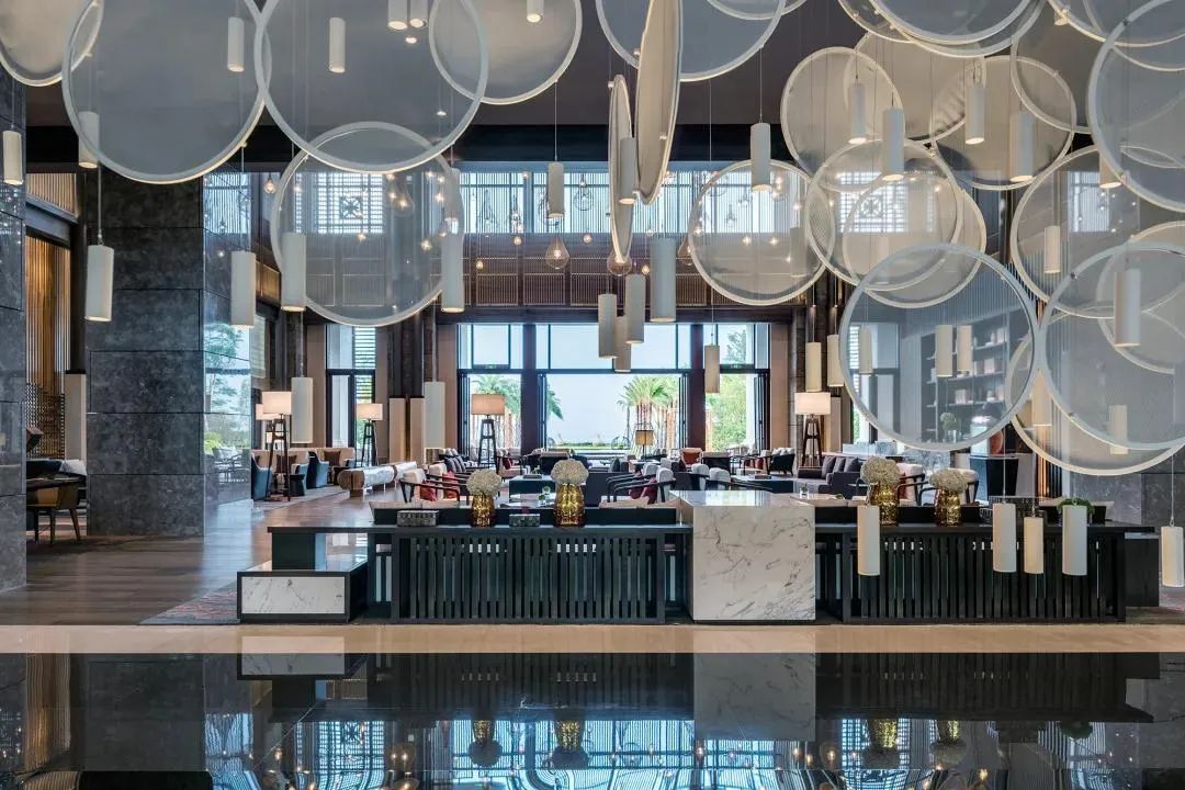 进入大堂,一幅大型艺术品直入眼帘,透过大堂对面玻璃幕墙,远方的碧海蓝天一览无余,心中立刻宁静了下来。