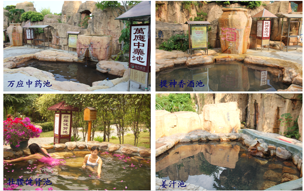 温泉公园营业时间:9:00-22:00 凭房卡 共 48 个泡池