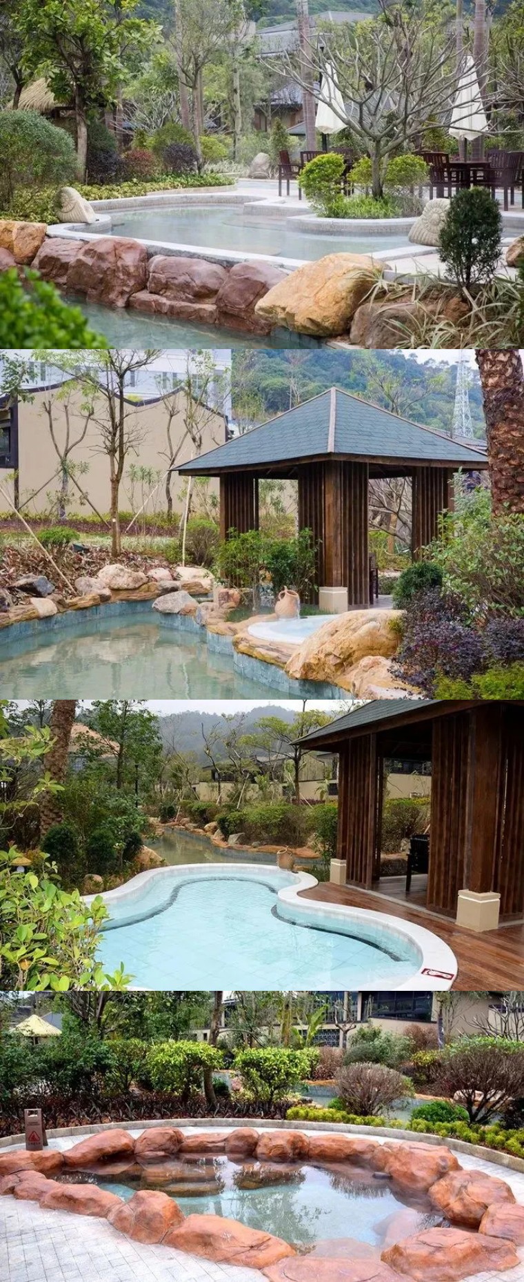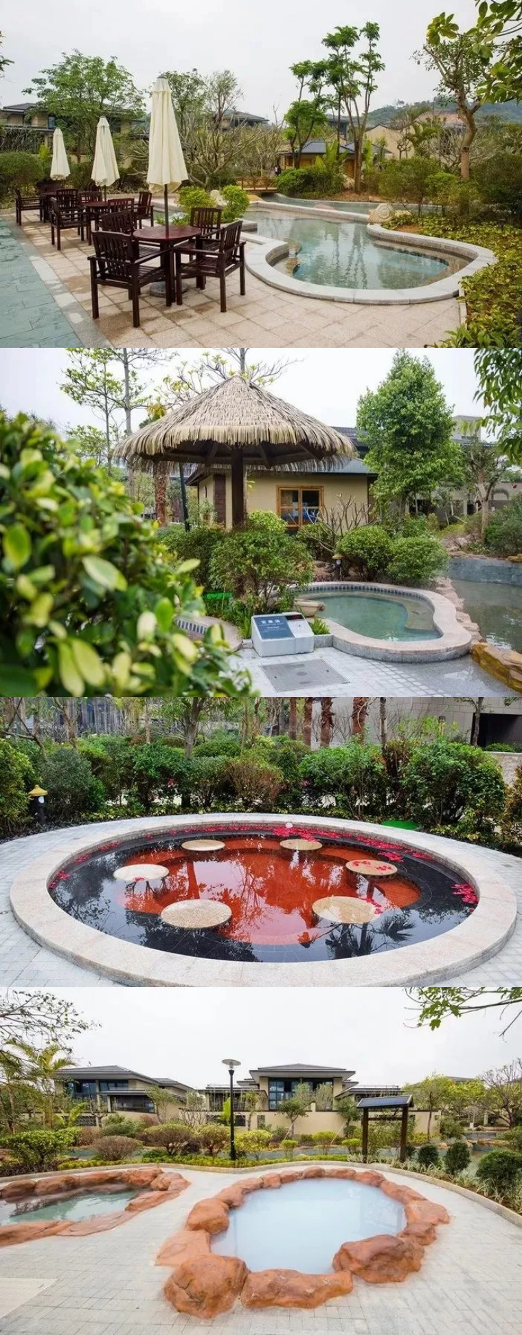 拥有32种汤池~日出水量达到1000多立方~水中还含有稀有的氡元素~无色无味~水质细腻~对心血管、胃、骨骼生长等内循环系统等均有保健、养生作用~