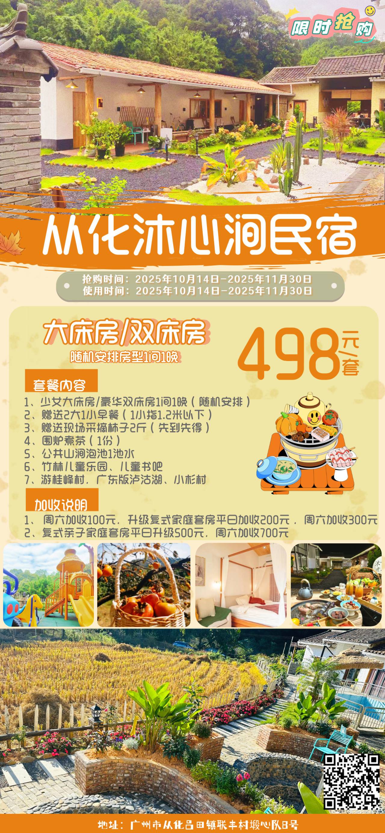 【惠州南昆山居五星度假】平日不加收!泡私家温泉+公共温泉双重享受!530元抢南昆山居度假村高级双/大床房/豪华双房+私家泡池2池水+自助早餐+畅游大泳池+非遗门票~可升级美食晚餐!一起来轻松度假