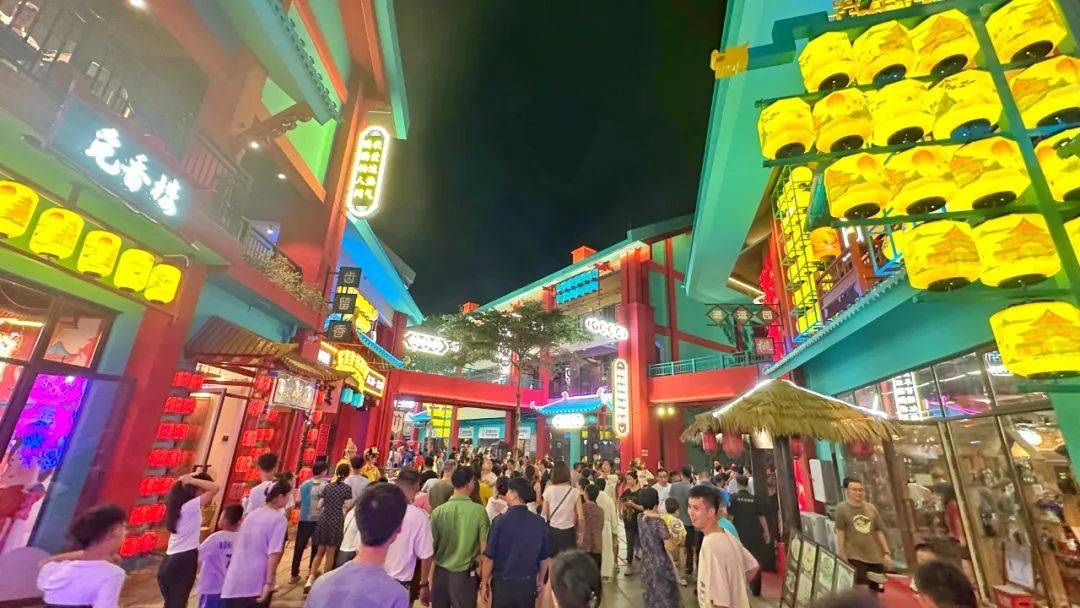 灯火辉煌、流光溢彩、人群熙攘、华丽服饰......再现了盛唐千年繁华盛景。不夜山谷,越夜越美丽,越夜越精彩!