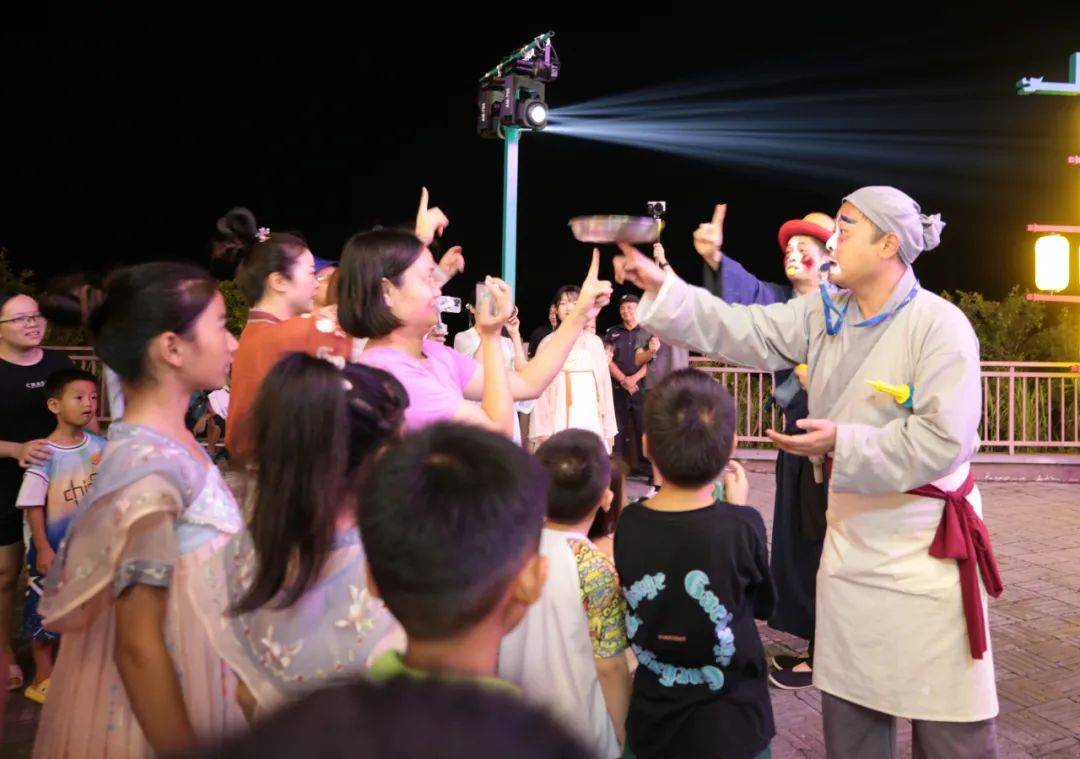 杂技是我国古老的民间传统艺术,本次表演融合唐朝百戏多样形式,有花样套圈、滑稽互动等环节扣人心弦。除了惊心动魄的表演外,小丑还不忘与观众互动,不少驻足围观的群众纷纷拿出手机拍照,记录下眼前这美好的瞬间。