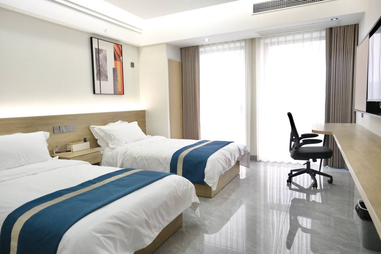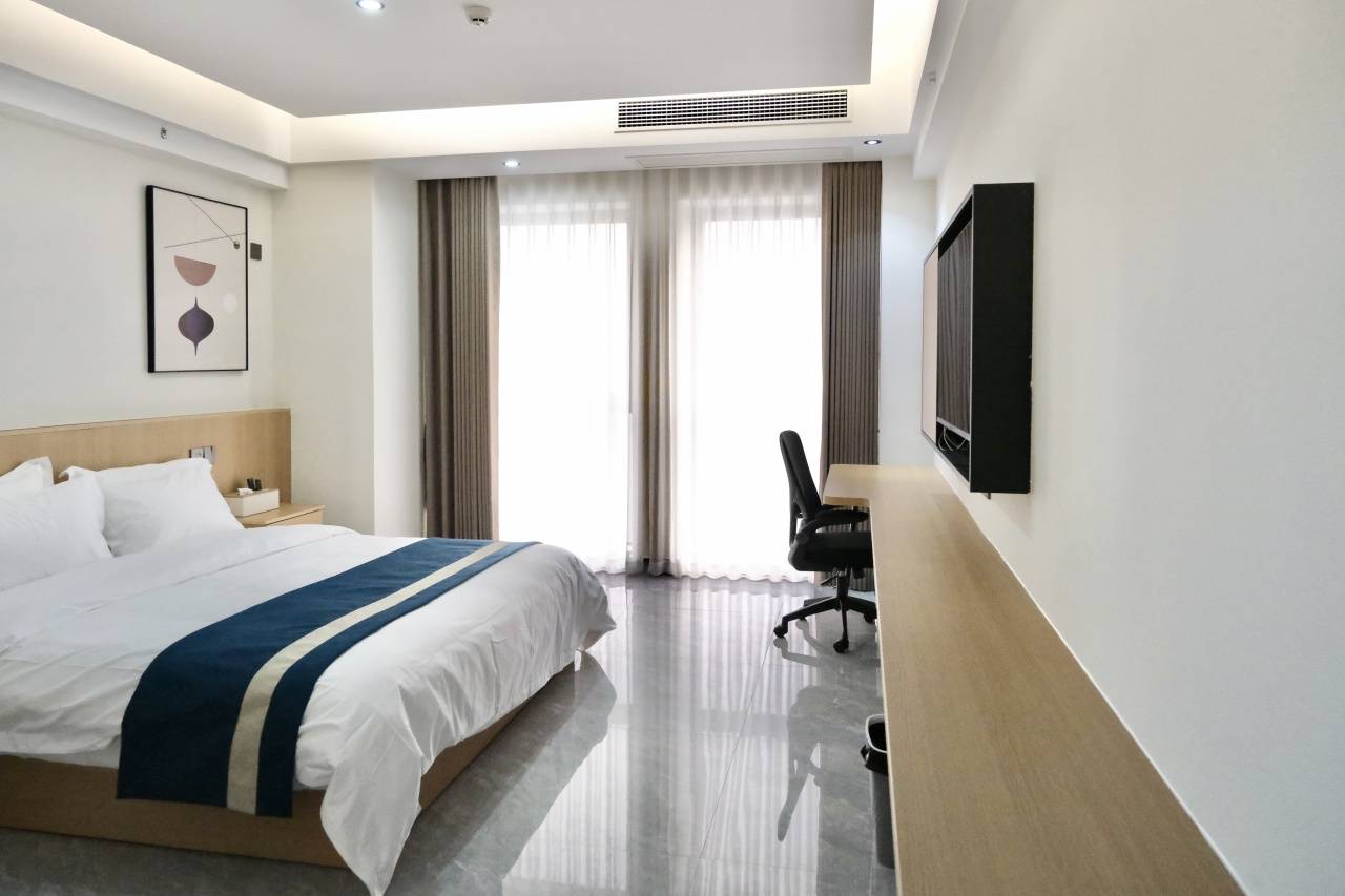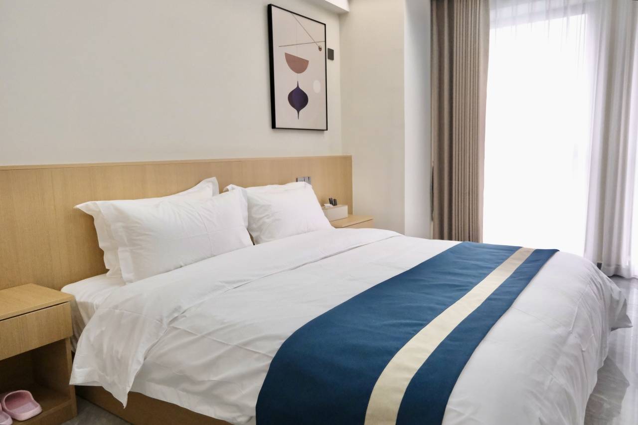 本次套餐入住大床房/标间。客房设计简约,把 “住得舒服” 这点做到了实处。30㎡起跳,空间宽敞,布局规整,180°落地窗引入光线。