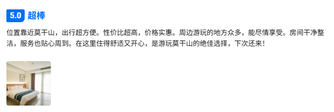 且酒店周边景点林立,距离莫干山风景区仅十分钟车程,距离莫干山开元森泊度假乐园25分钟车程,上渚山奇幻谷,下渚湖湿地20分钟可达,游玩超级方便~