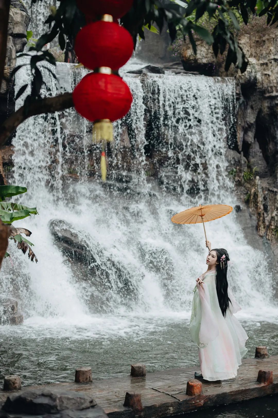 如银河飘雪从山峰中飞泻层叠而下