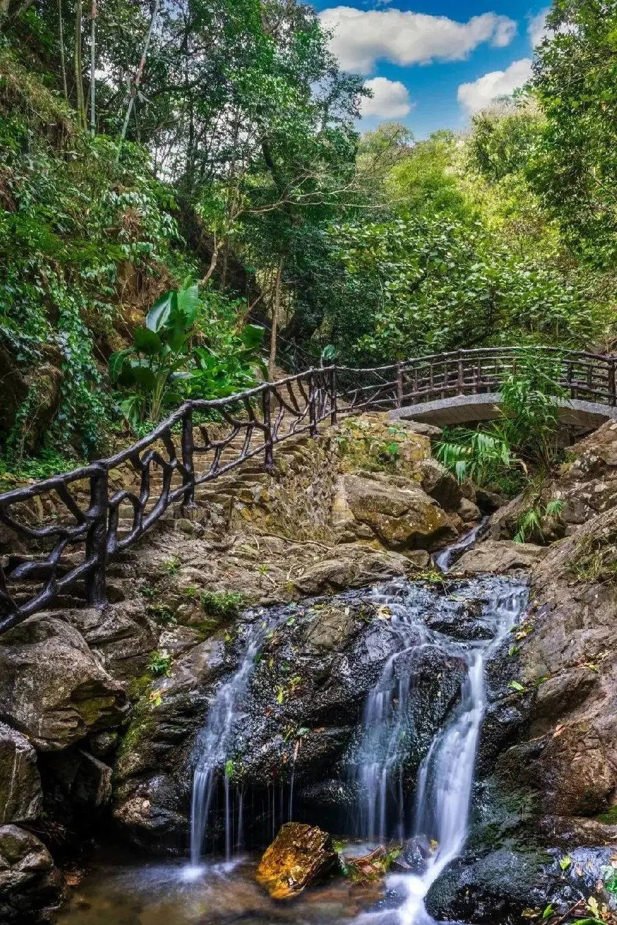 由奇石深潭、清溪碧水、九重瀑布