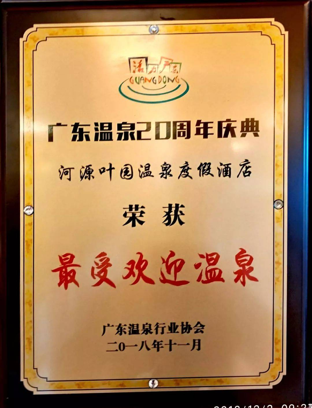 叶园温泉旅游区荣获业内重磅肯定