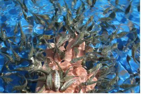 亲亲鱼像一群尽职的“医生”在您皮肤的各个部位为您按摩、去痒、涤污、杀菌,让人体毛孔畅通,排出体内垃圾和毒素,同时令皮肤更好地吸收温泉中的各种矿物质,加速人体新陈代谢,达到美容养颜、延年益寿的奇特功效。