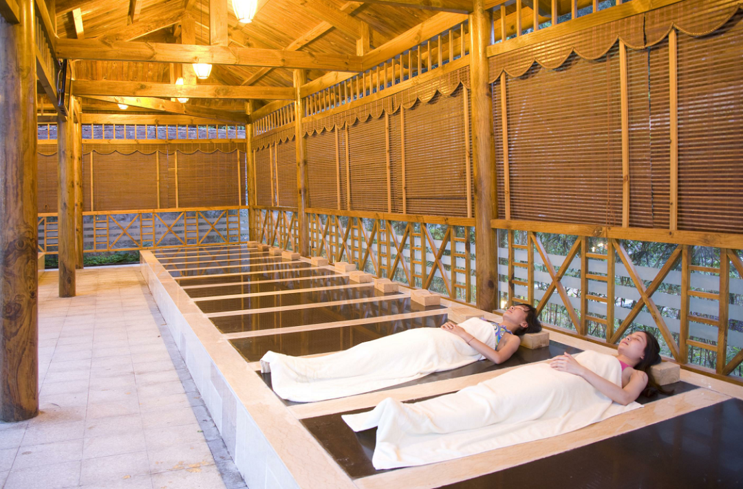 石板泉采用高温温泉水在富含对人体有益微量元素的石板下潺潺流过。人躺在石板上,可改善血液循环,增强免疫力,对风湿病、关节炎、胃病等能起到辅助疗效。您还可以在接受石板保健作用的同时,进行足疗、局部按摩等保健项目。