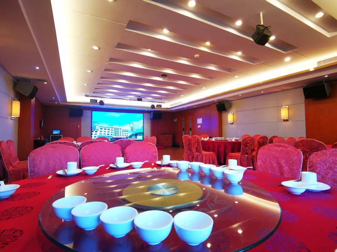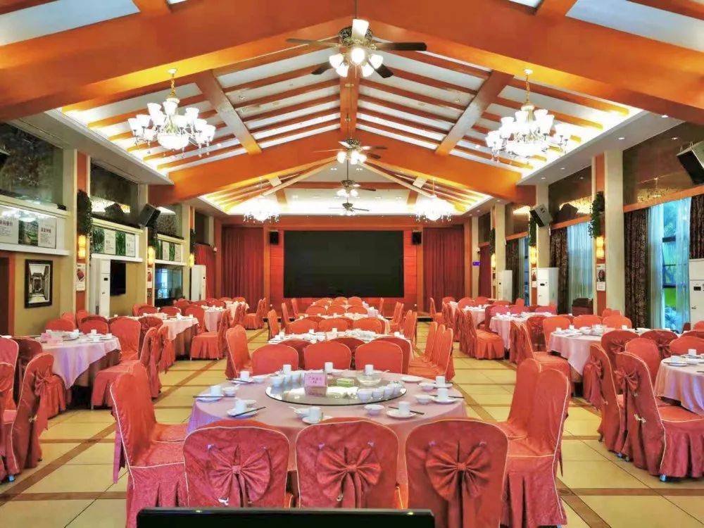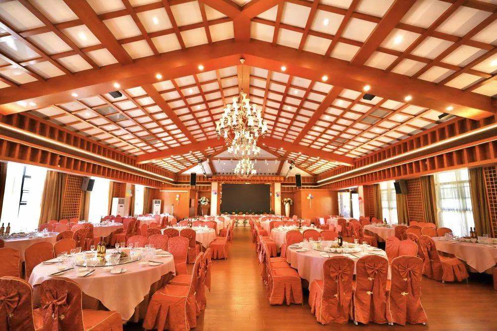 综合客家建筑风格的宴会中心,装修华丽,环境优雅,可同时容纳700人用餐,配有豪华餐厅、会议室。