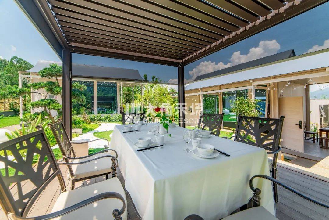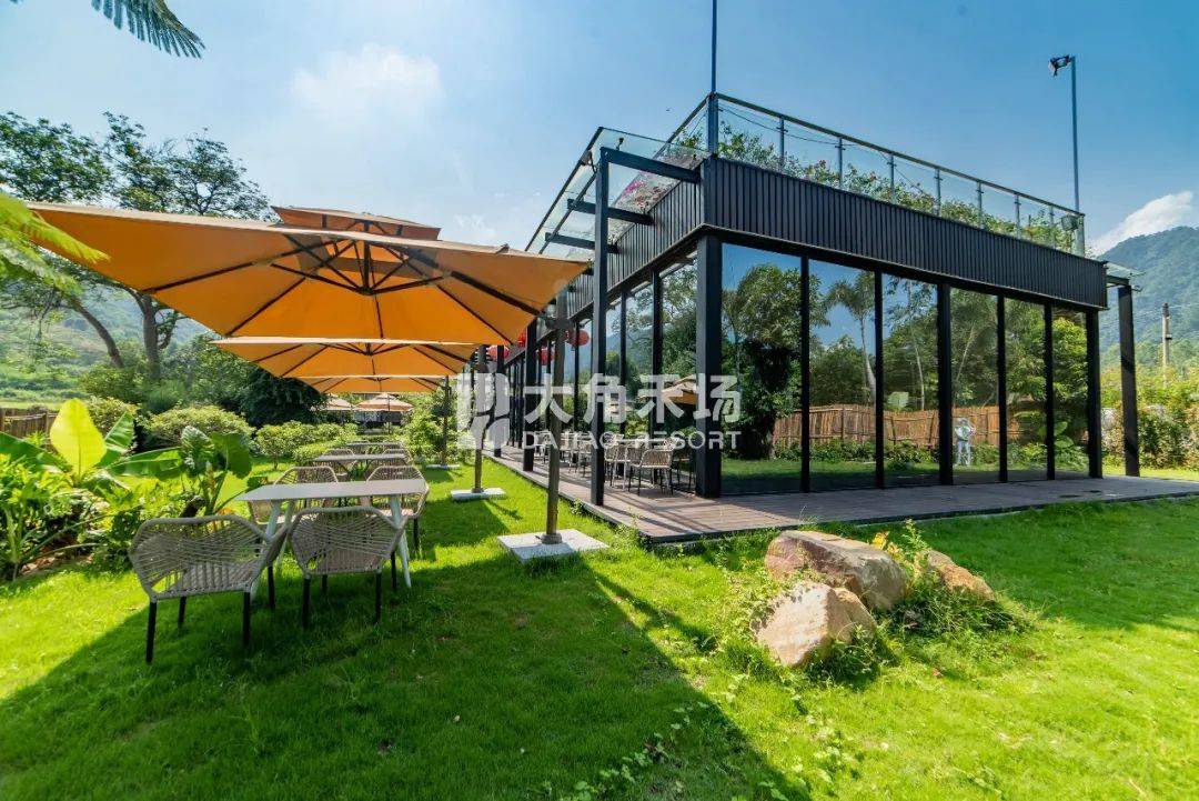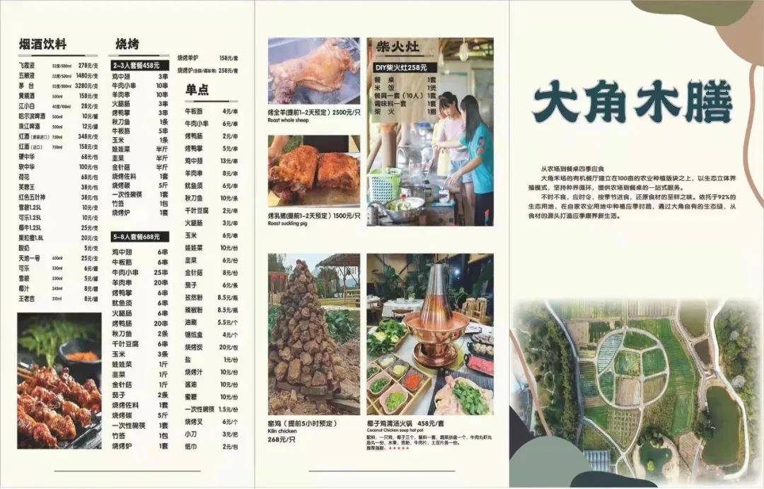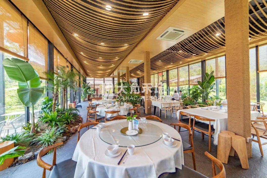 ⼤⻆⽲场的餐厅,建⽴在100亩的农业种植板块之上,以⽣态⽴体养殖模式,坚持种养循环,提供农场到餐桌的⼀站式服务,确保顾客能在此体验四季应季、原滋原味的⽣态料理。