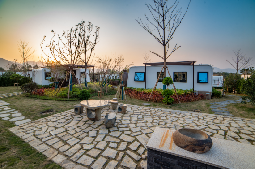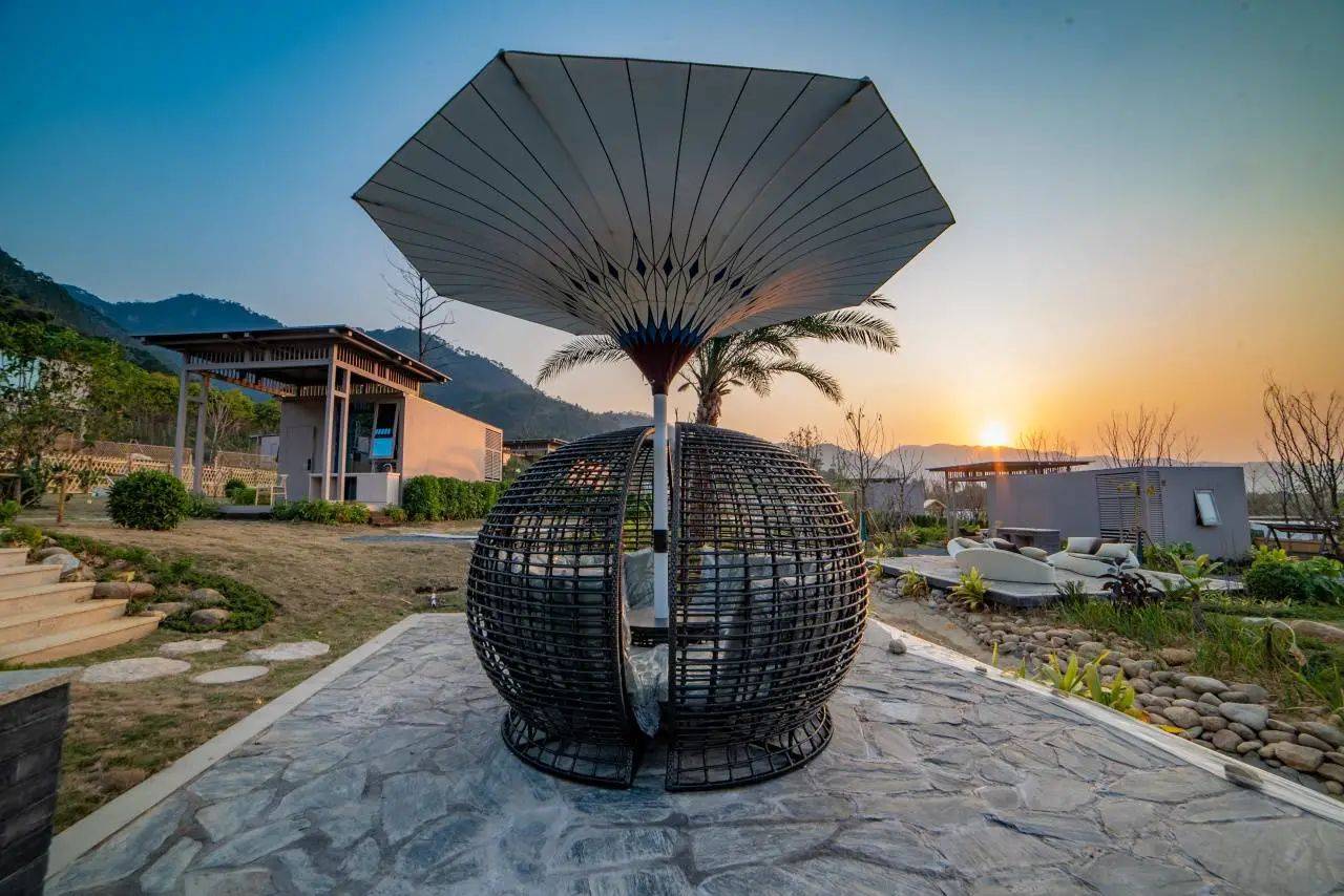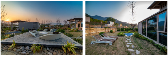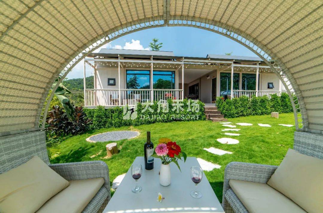 比邻复式坐落在度假村最高峰,您可以携一家大小入住独栋,隐私性和保密性强。一家人坐在庭院里,一起观星喝茶聊天,比邻一共具有两层楼,您还可以走上二楼看一看大角禾场的全景,感受岁月静好,比邻别墅房屋设施齐全,方便您回归自然以及家庭生活。