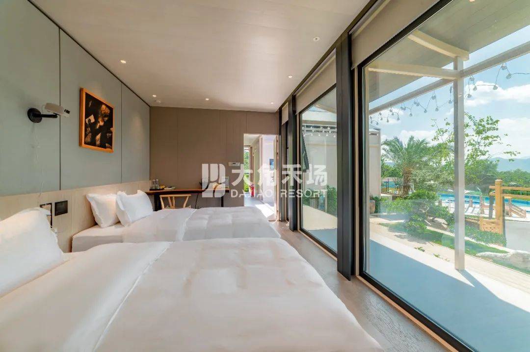 大角合院坐落在度假村的半山腰,您可以拥有独立的高尔夫果岭场,在舒适的景色中一家qi其乐融融地打高尔夫球,除此之外,您还可以拥有独立汤泉池,日式风格路滑景观,在山色美好间卸下疲累。合院房间设施齐全:具备独立厨房,榻榻米,功夫茶,自动麻将机,让您在大角禾场里亲近自然同时还可以其乐无穷。