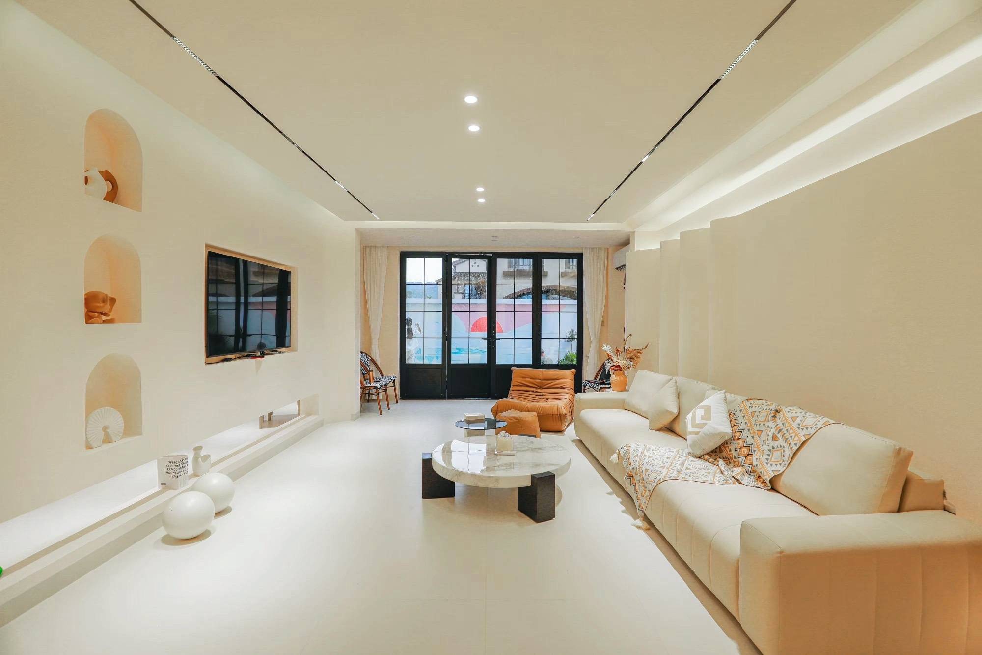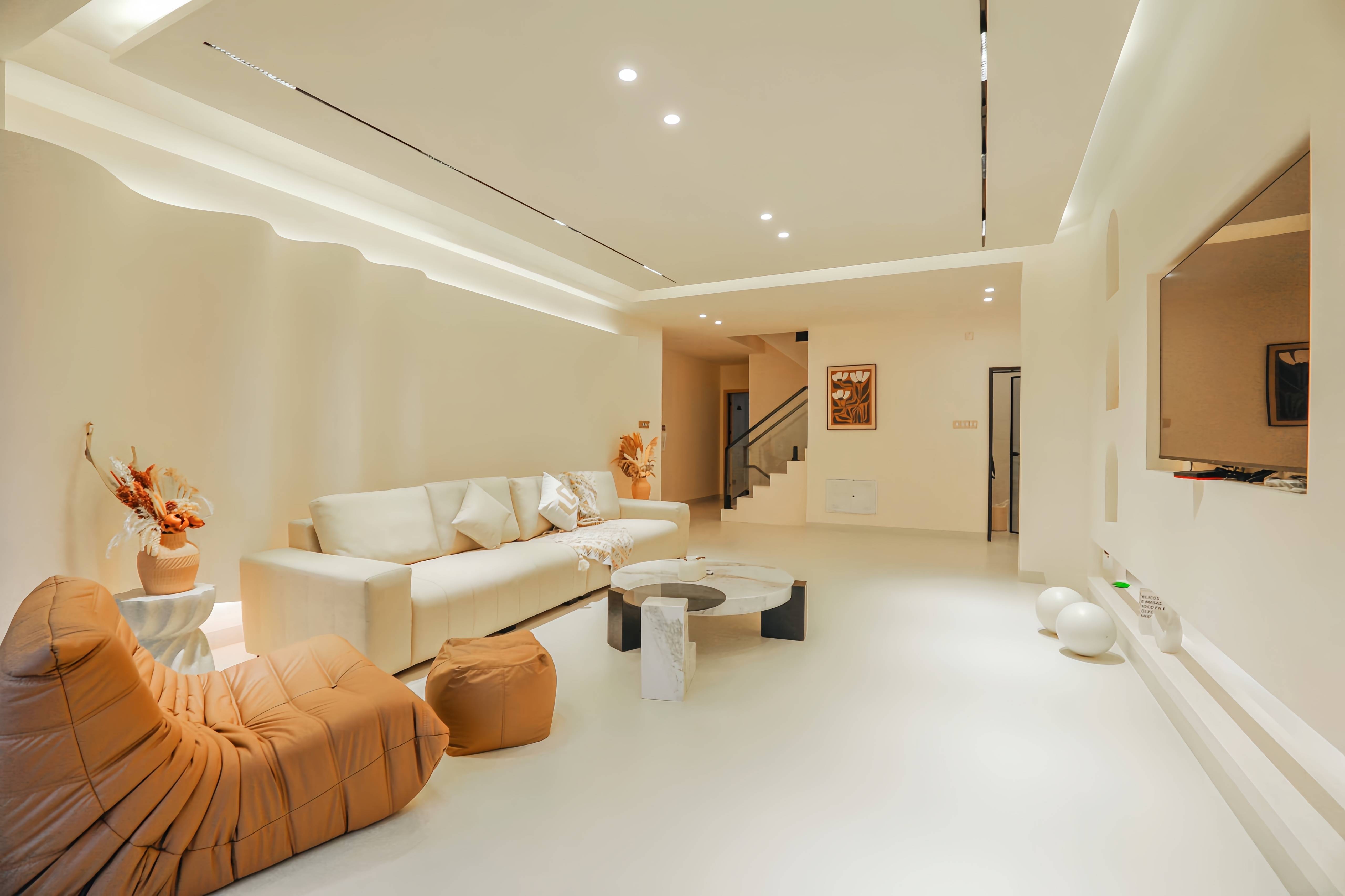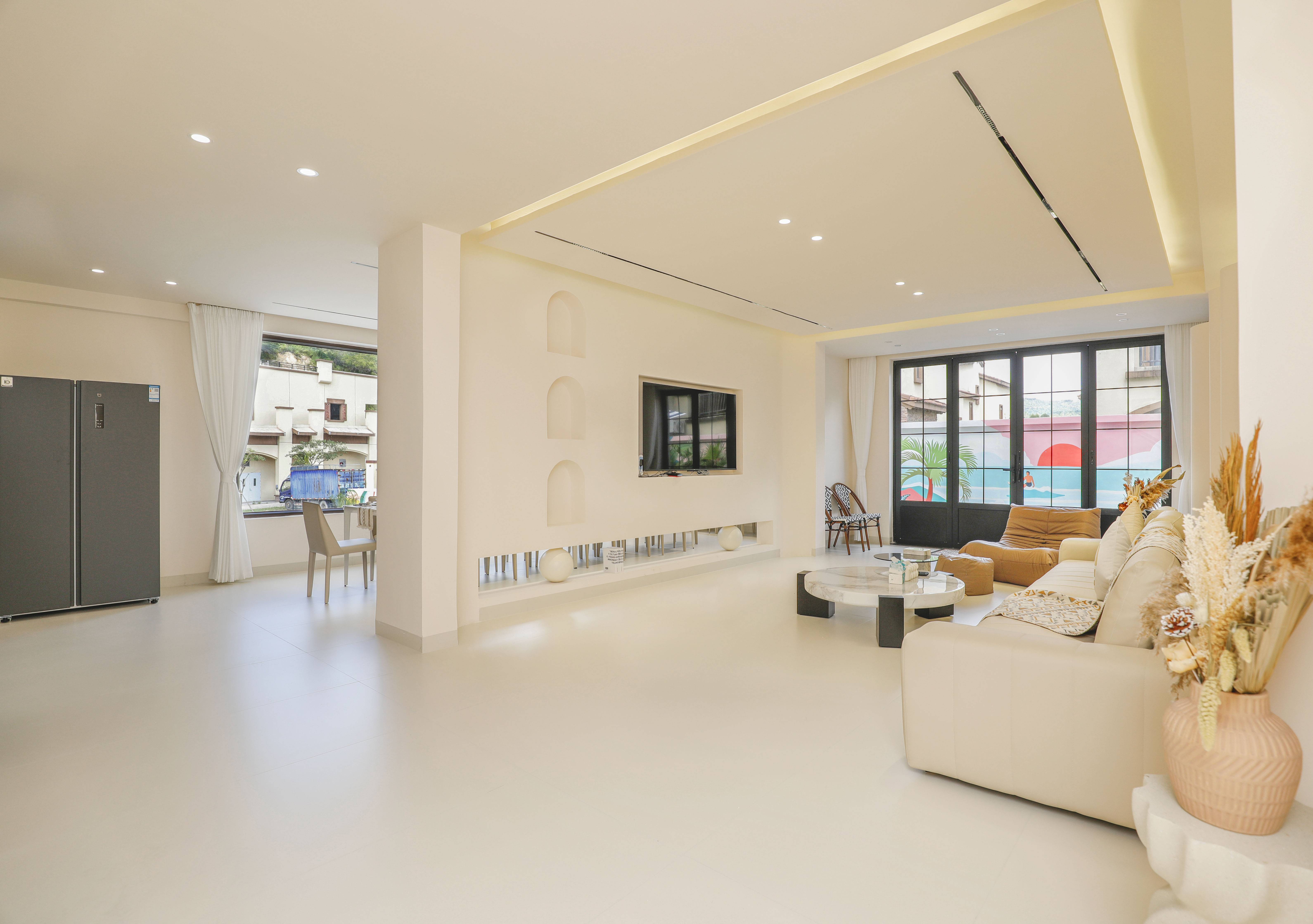 ■ 在这个精致的客厅里配有:轻奢奶油风会客厅、意式大沙发、65寸大电视