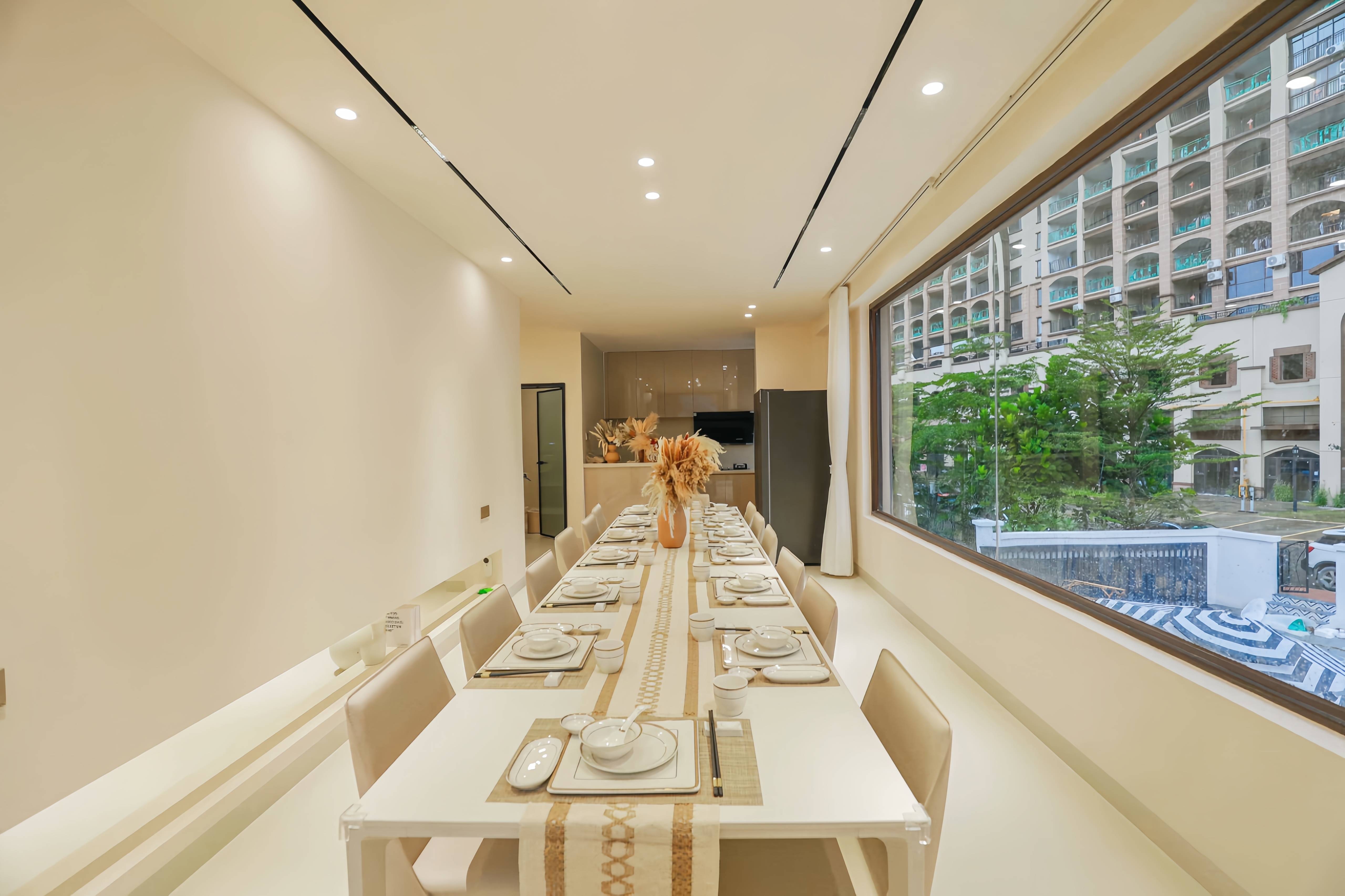 ■ 在这个意式豪华的餐厅内有:约10人位的西式餐桌(如果人多可临时加桌椅),厨房内锅碗瓢盆齐全,配有大冰箱、抽油烟机、灶台炒锅、电饭锅、煮水壶、刀具砧板、红酒杯、白酒杯等常用配套