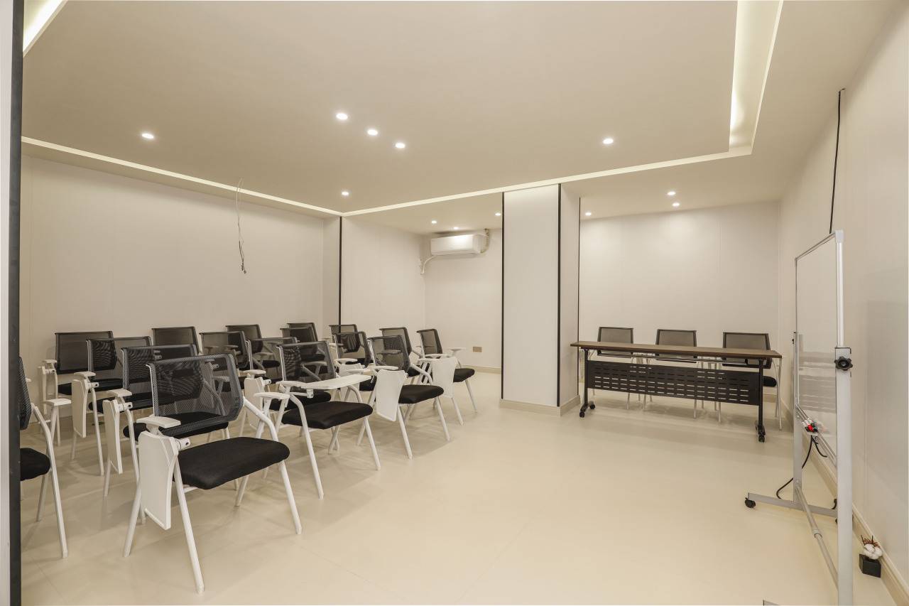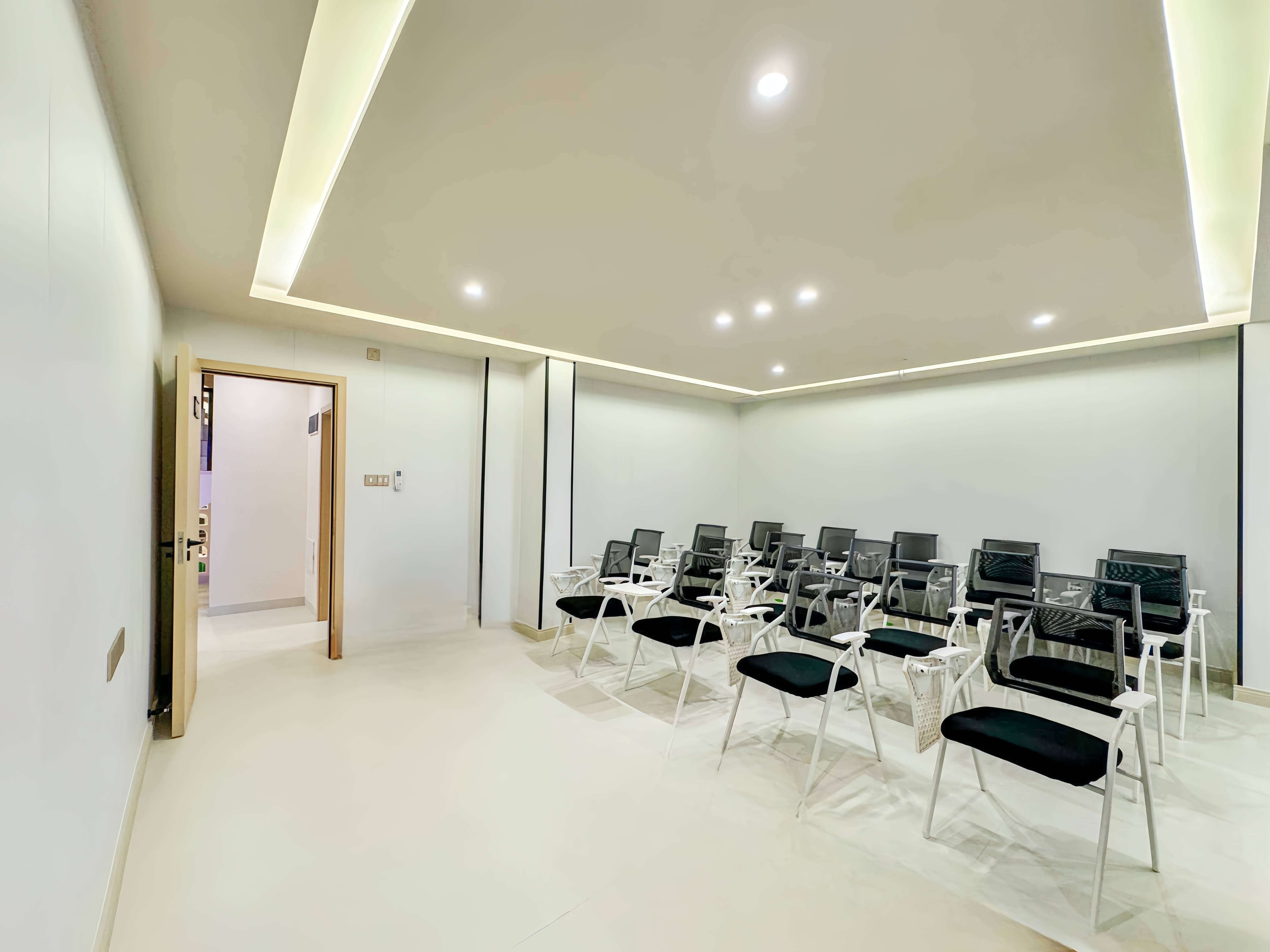 ■ 会议室配有约20个座位,人多可额外添加座位、投影仪、投影幕布、移动白板等