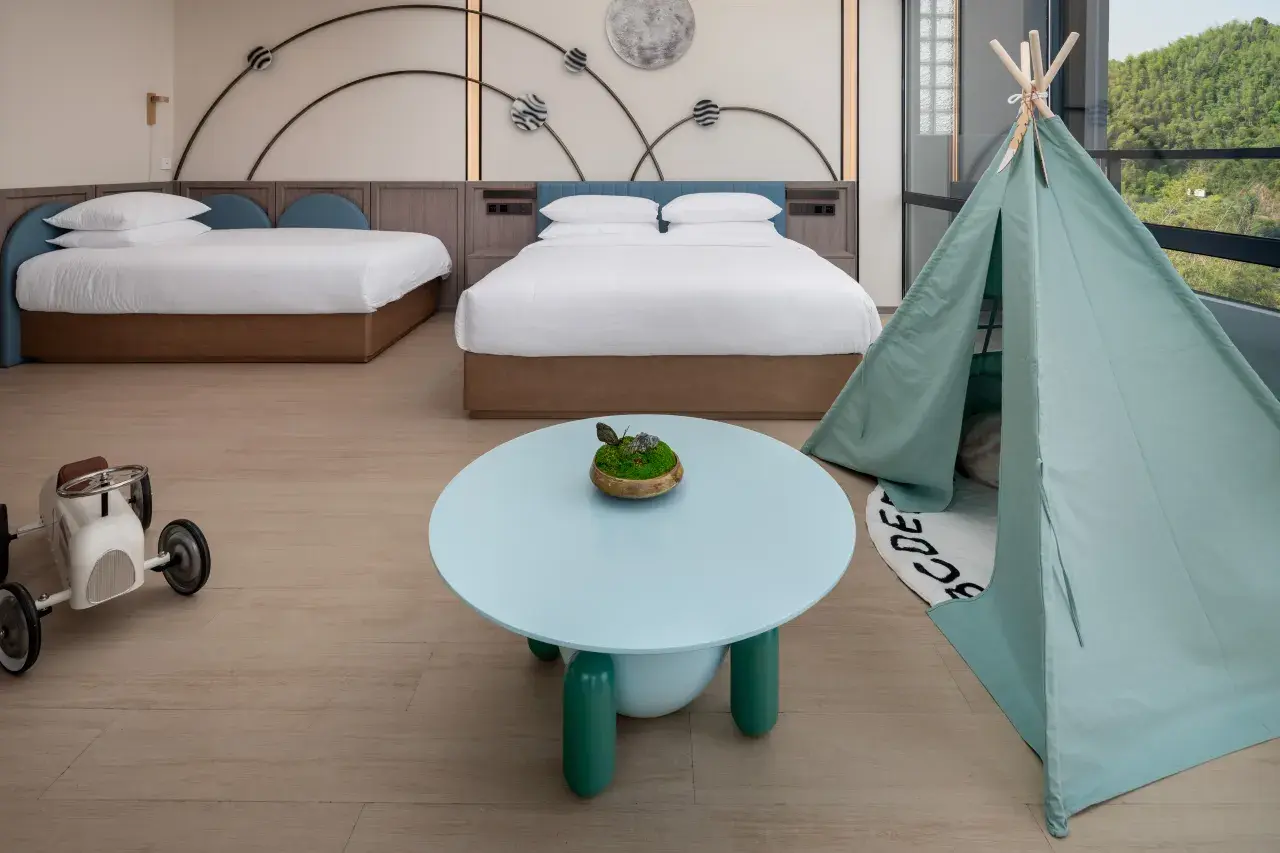 亲子家庭出游也不用担心,酒店的儿童乐园(呱呱乐园)和手工坊为孩子和你创造亲密时光,可以放松休闲和亲子溜娃。