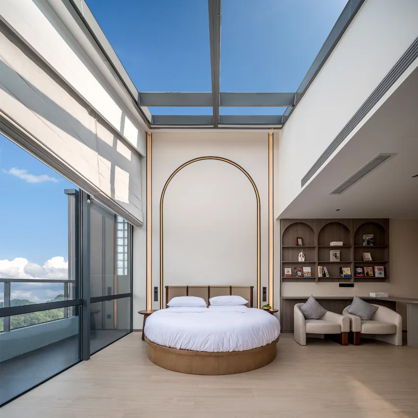 酒店建筑面积25000平米,拥有222间云端客房,清晨从鸟鸣中醒来,夜晚在繁星中入眠。悬崖别墅、星空房、LOFT别墅等近20种房型,让您的每次入住都充满惊喜。