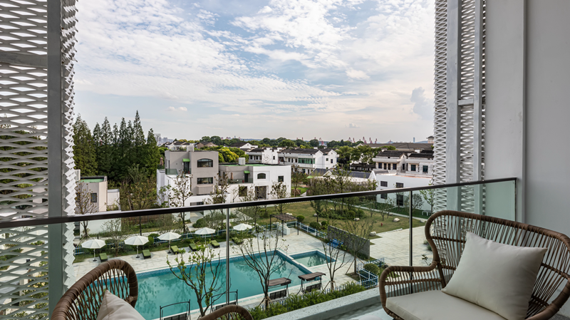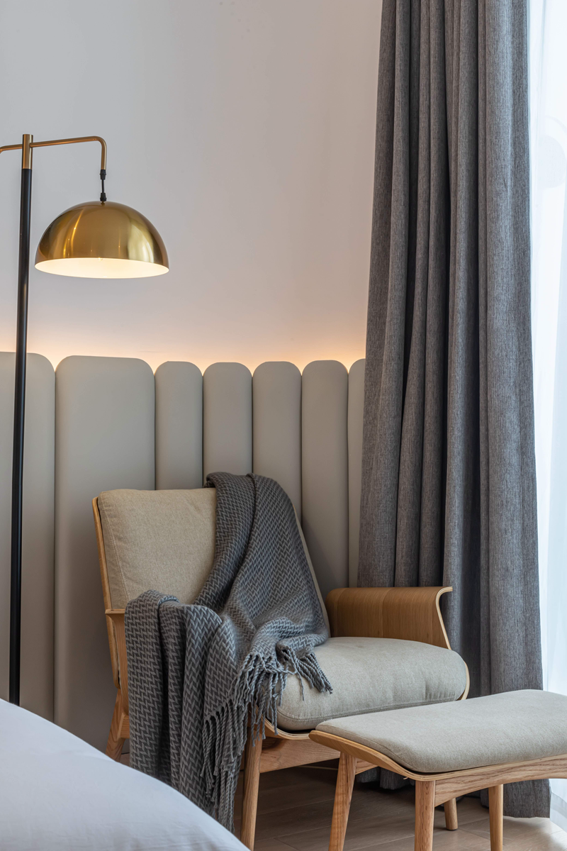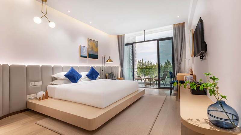 几幢客房区间穿插着许多天然植物,创造出一种对现代生活的重新解读,拉开窗帘能见到满树繁花与“小森林”,处处传达着自然在室内的渗透。
