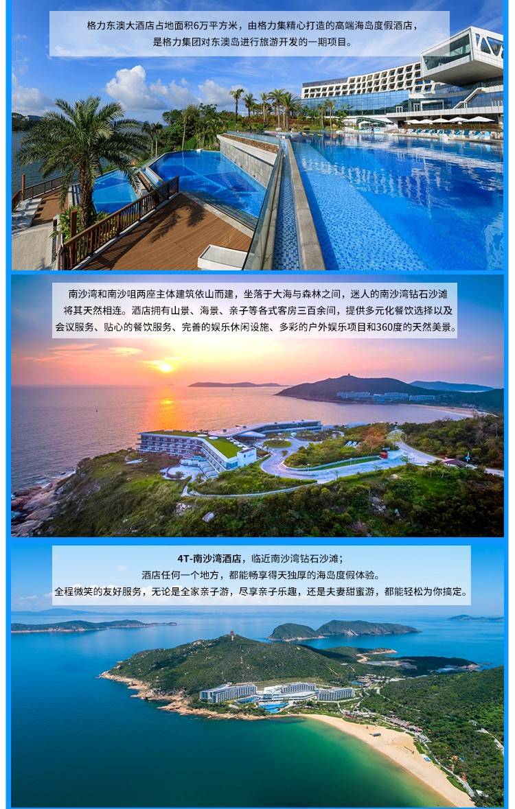 【双十一优惠套餐C】¥1699元享珠海格力东澳大酒店,南沙湾海景房一间两晚+双人早餐+晚餐一次+海洋热疗一次+环岛游一次+儿童俱乐部娱乐活动三项、旅拍(限量预约)、海岛故事会(逢周六)、沙滩篝火电音派对(逢周六)~使用时间:2025年10月15日至2026年3月31日!!