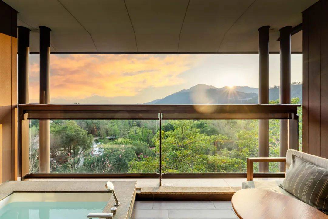 放飞身心且听风吟,每间均设有宽敞露台,与大自然无限接近。躺在舒适的日式沙发躺椅上,目之所及满山翠绿;露台一隅特设嵌入式浴缸,让您在迷人景致中舒坦心境,卧享风声虫语的私密空间;奢华寝具与织品,为入眠时光添加一抹云朵般的温柔。