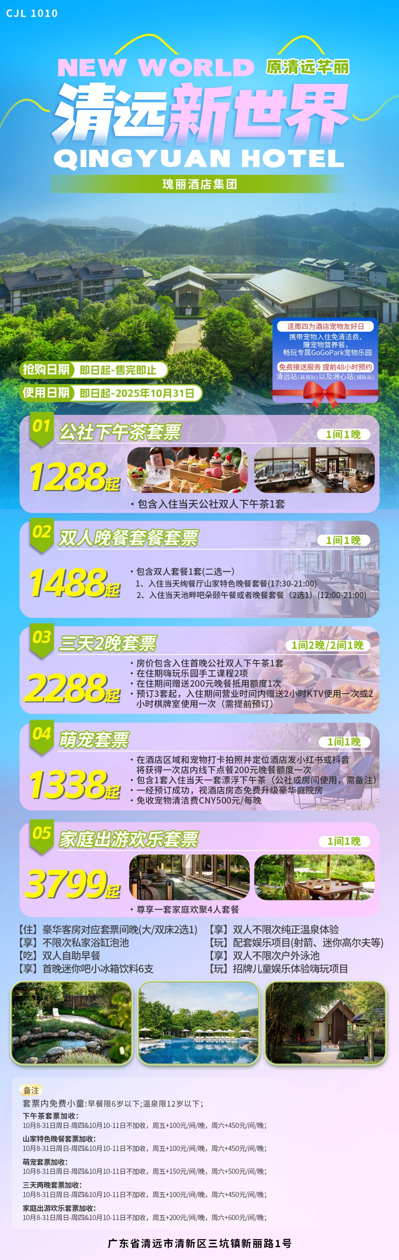 2、如需使用温泉/泳池请自备泳装,公社下午茶套餐需提前一天预订,使用时间:12:00-18:00