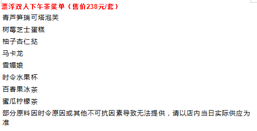 3、房价包含入住首晚公社双人下午茶1套