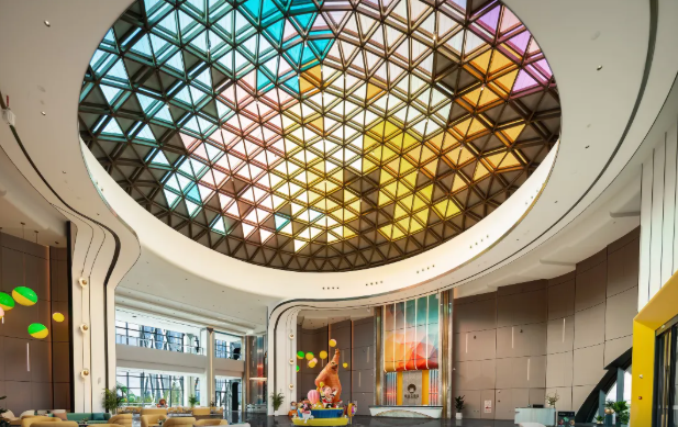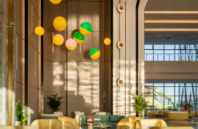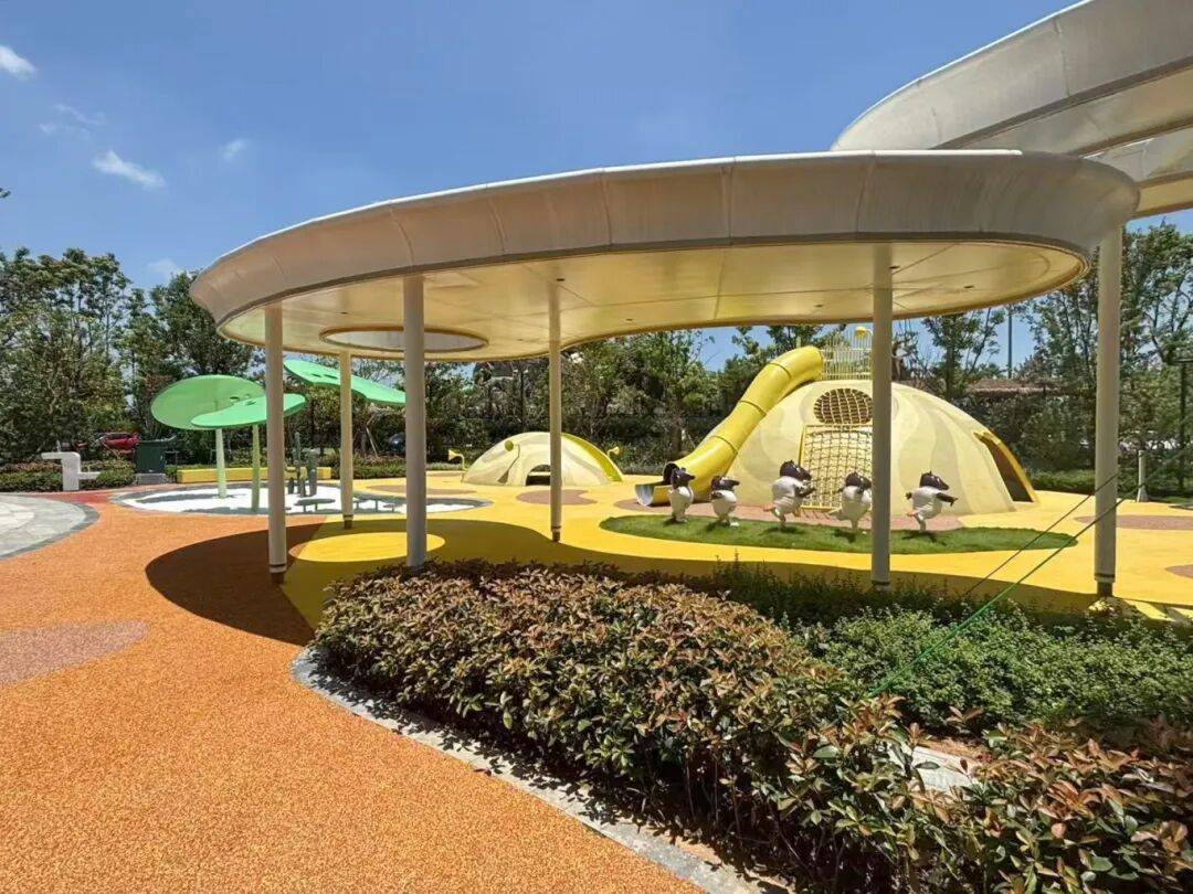 除了室内玩乐区,酒店还在户外中庭,设计了一座无动力游乐园,住客可以免费带娃畅玩