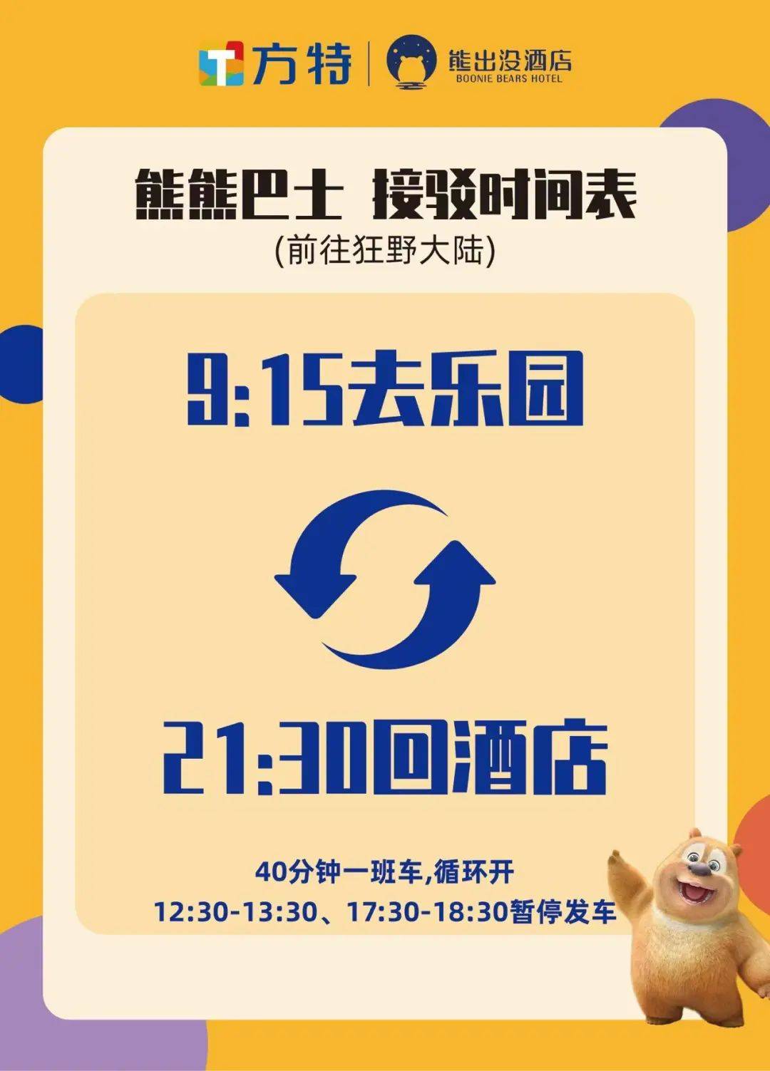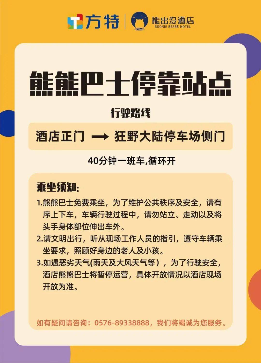 ▲酒店往返台州方特·狂野大陆接驳车(班次供参考,具体以酒店实际为准)