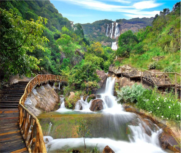 远眺白水仙瀑,近揽南昆山脉,奇峰秀水、峡谷激流、森林湖泊、天梯云雾、 温泉卧佛。挑战惊险刺激“ 全球漂流之霸”, 峡谷激流,揽峡谷深壑之幽,天池碧潭之秀。