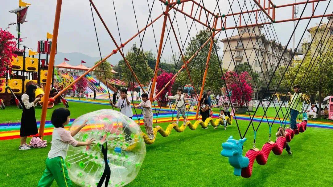 酒店还自带户外儿童游乐园+室内淘气堡乐园,缤纷多彩的马卡龙色系,假期里轻松溜娃~