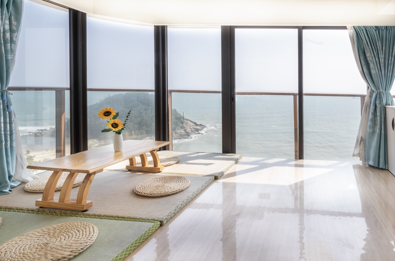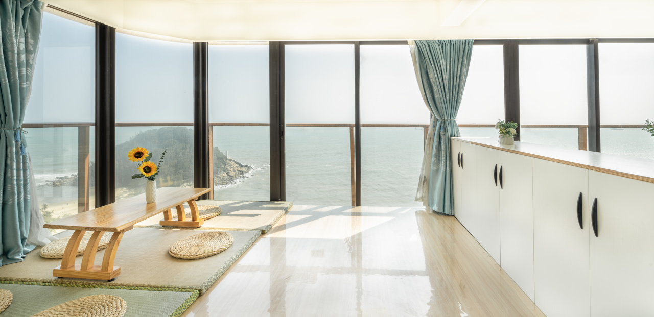 白天拉开窗帘,享受来自海边的阳光