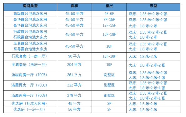 注:1、温泉中心&康体中心如遇维护保养、恶劣天气等,部分设备设施暂停开放,具体开闭时间视酒店而定,设施关闭期间入住/入园,费用不另做退还;