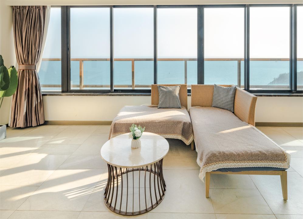 白天拉开窗帘,享受来自海边的阳光