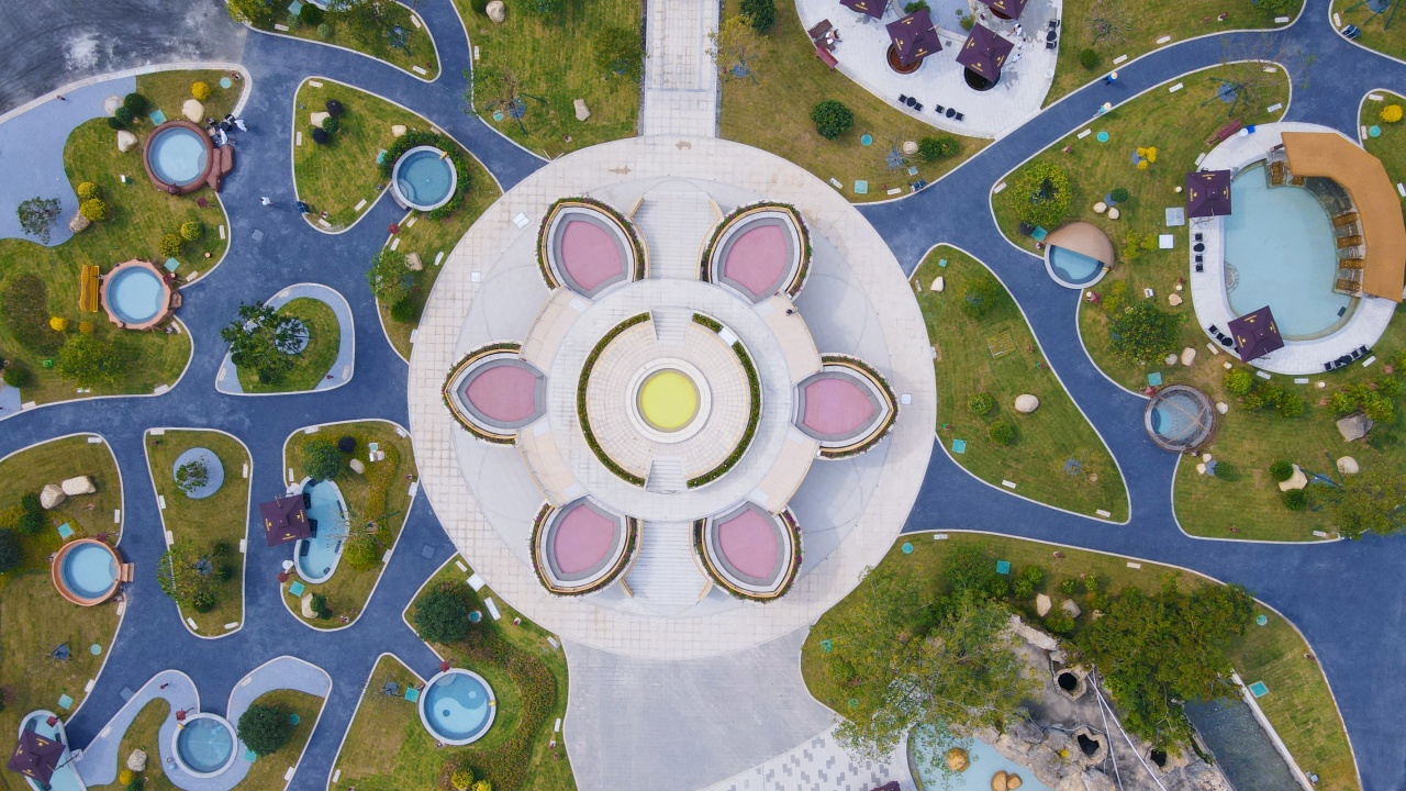 每一片花瓣形成一个相对独立的庭院空间,搭配各式泡池