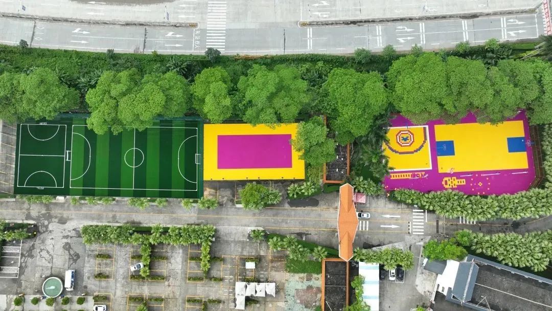 隐藏在树荫下的童趣像素风篮球场、网球场
