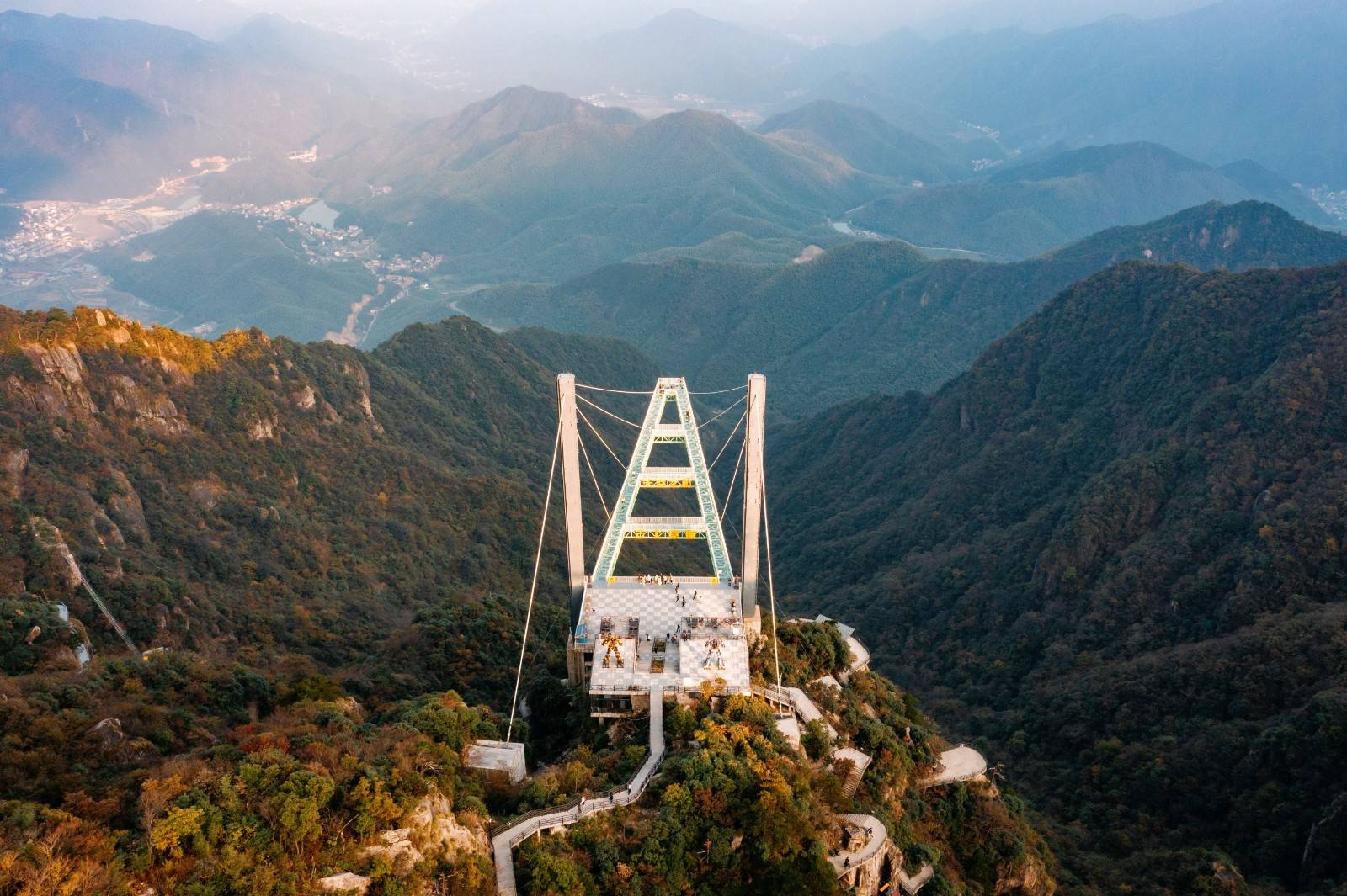 呈A字型延伸,全透明玻璃桥身,如在天空之境