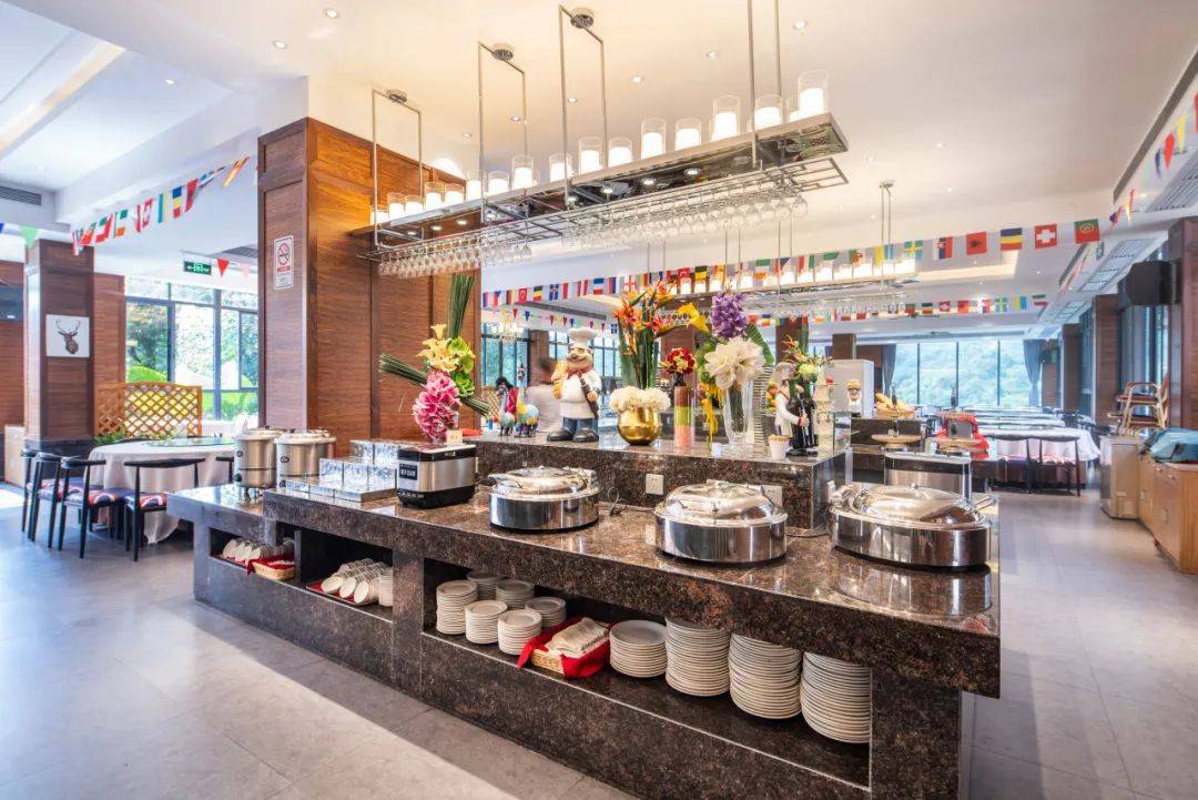 英伦风格的餐厅、丰富可口的美食让你在泡汤后能大快朵颐~欧式休闲度假布置、浪漫灯光、悠扬音乐为用餐更添几分惬意~~半壁果山美景跃入眼帘,诱人的美食更催人择椅落座!