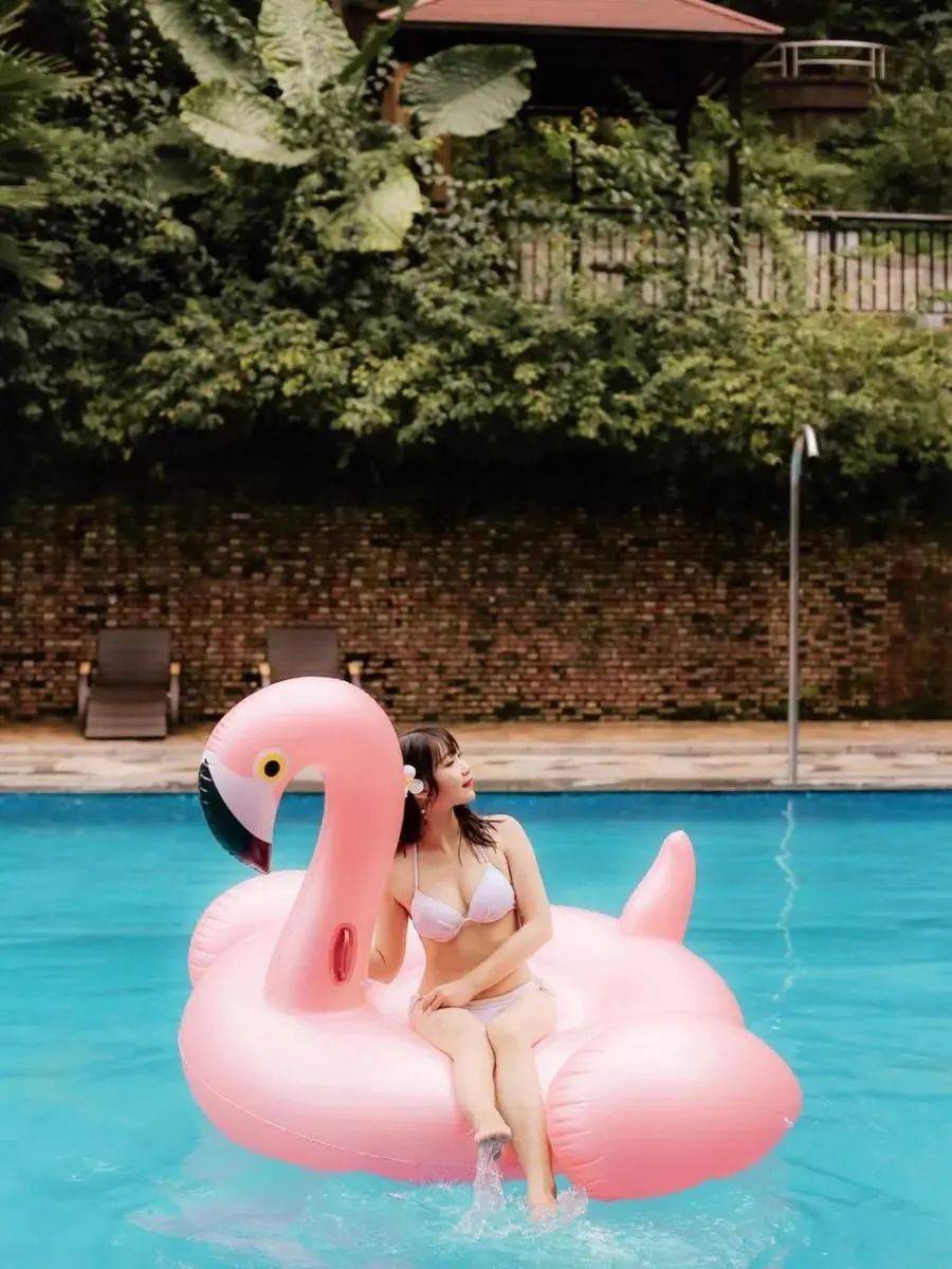半山的泳池蓄以清澈的山泉水,透心凉,心飞扬!