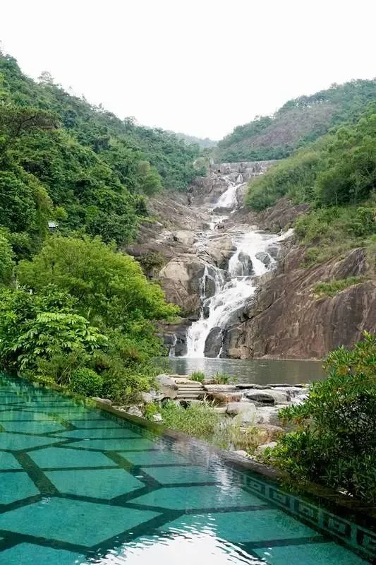 畅游于九龙潭瀑布之下的无边际泳池中