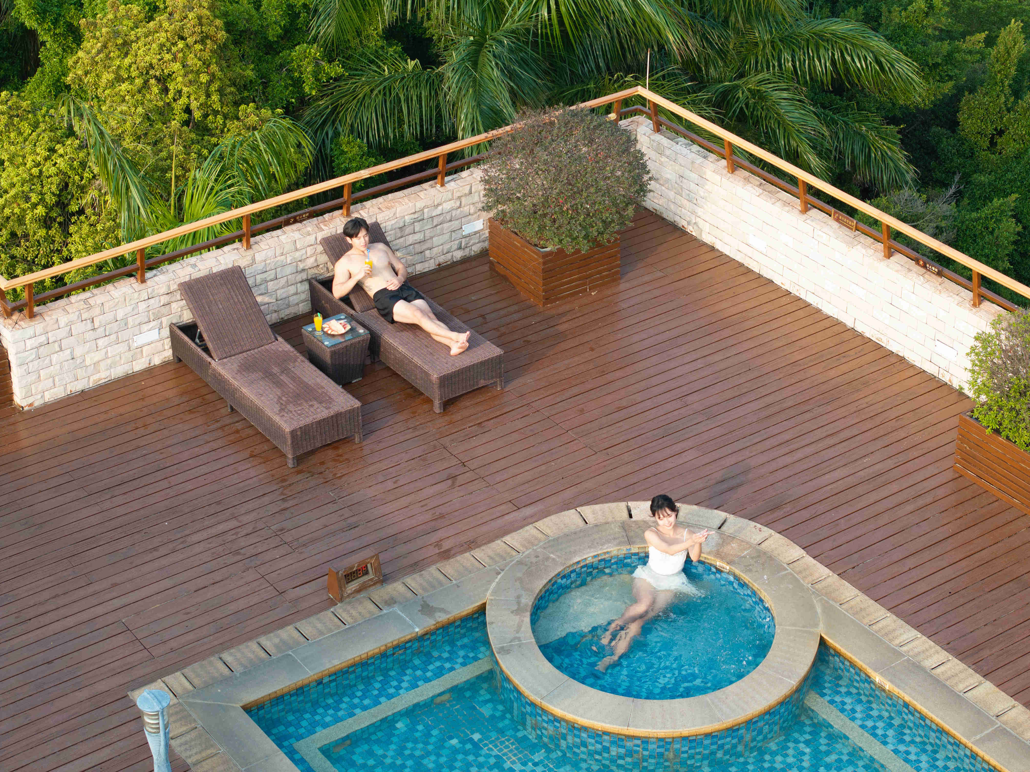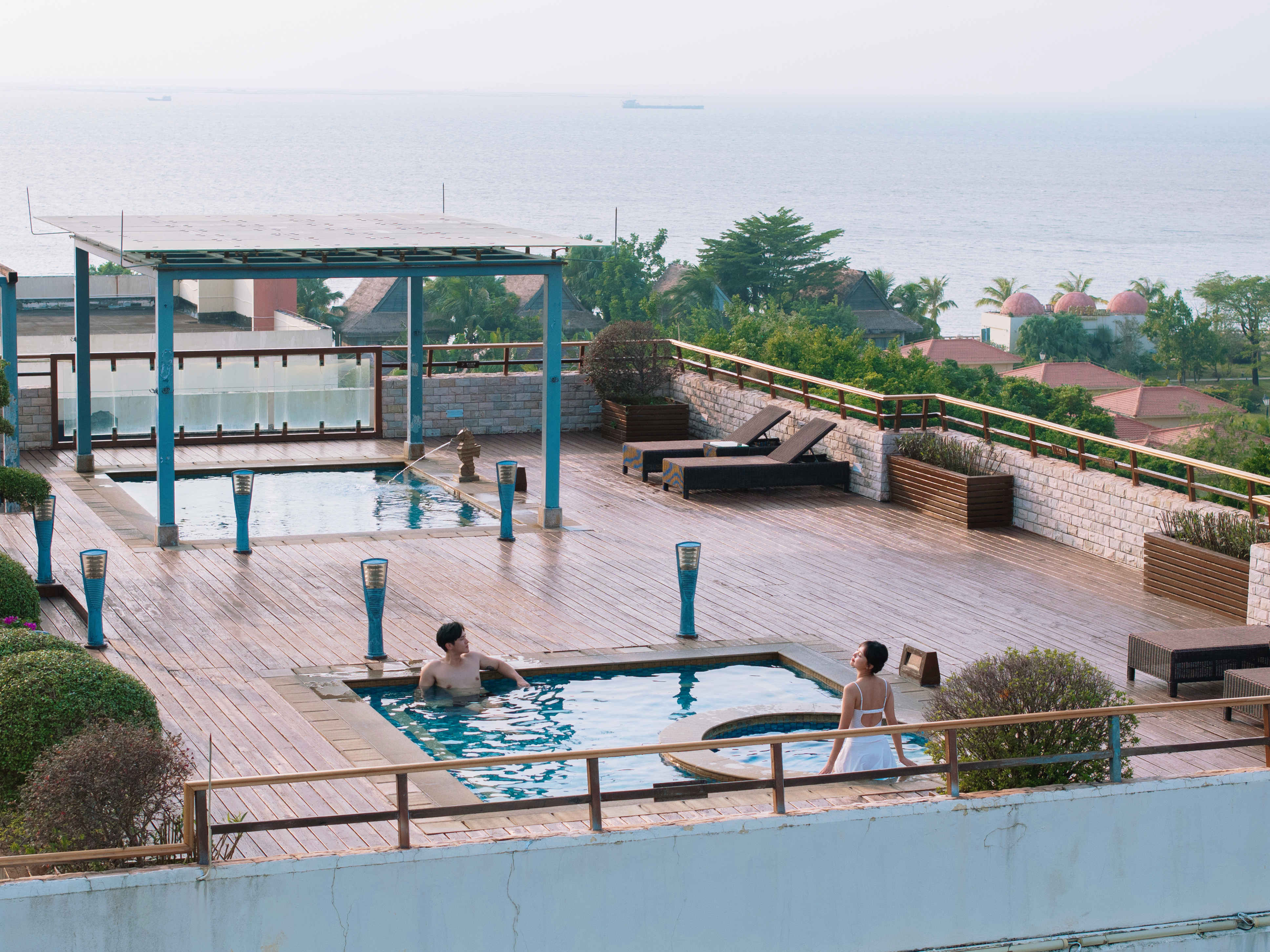 空中温泉位于海洋温泉四楼,以碧海蓝天为幕,