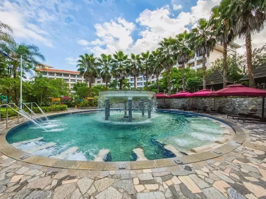 自助早+海鲜自助晚+特饮【惠州龙门富力希尔顿度假酒店】599元=豪华园景房+自助早餐+海鲜自助晚餐+大堂吧特饮+1600平室外泳池水上闯关体验 +小火车巡游+无动力攀爬+酒店温泉泡池~
